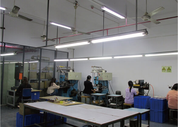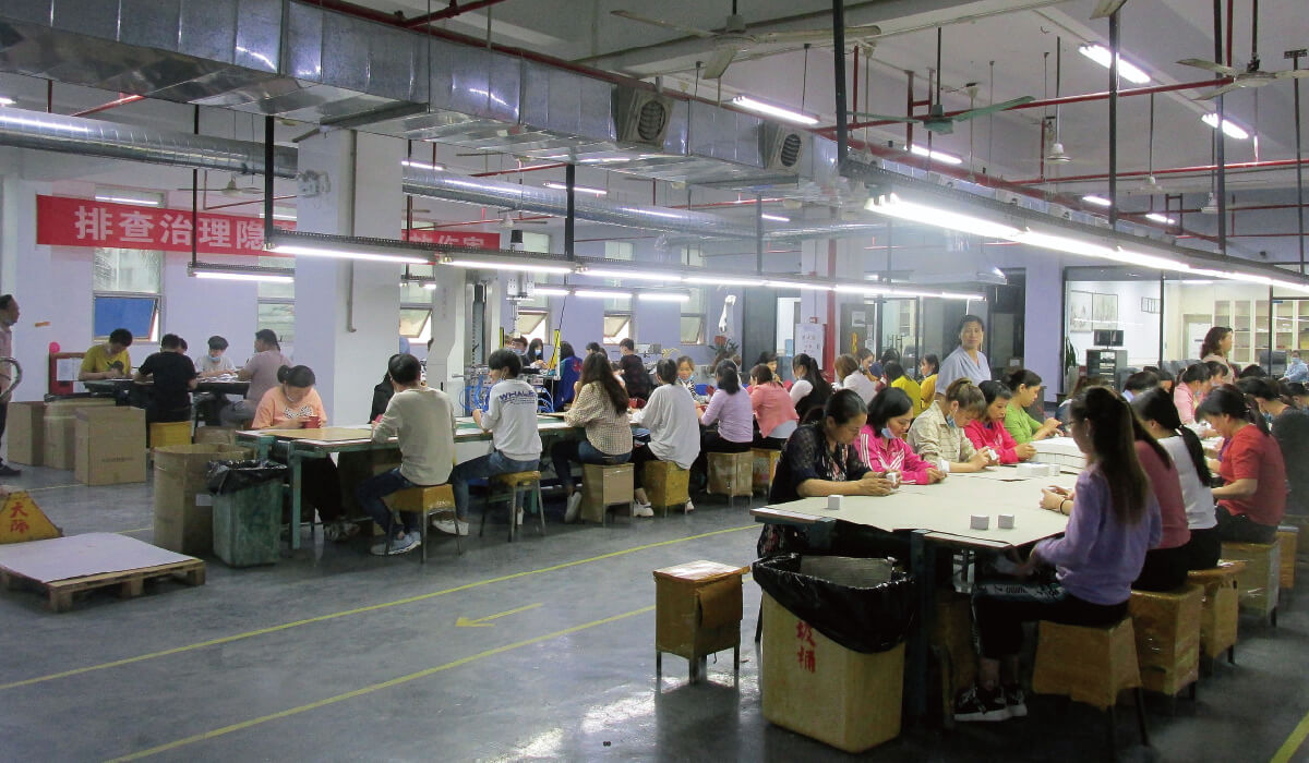 Huizhou factory has a molding department, a hot stamping department, an assembly processing department, a sample preparation department, a purchasing department, a quality management department, a warehouse management department, etc.